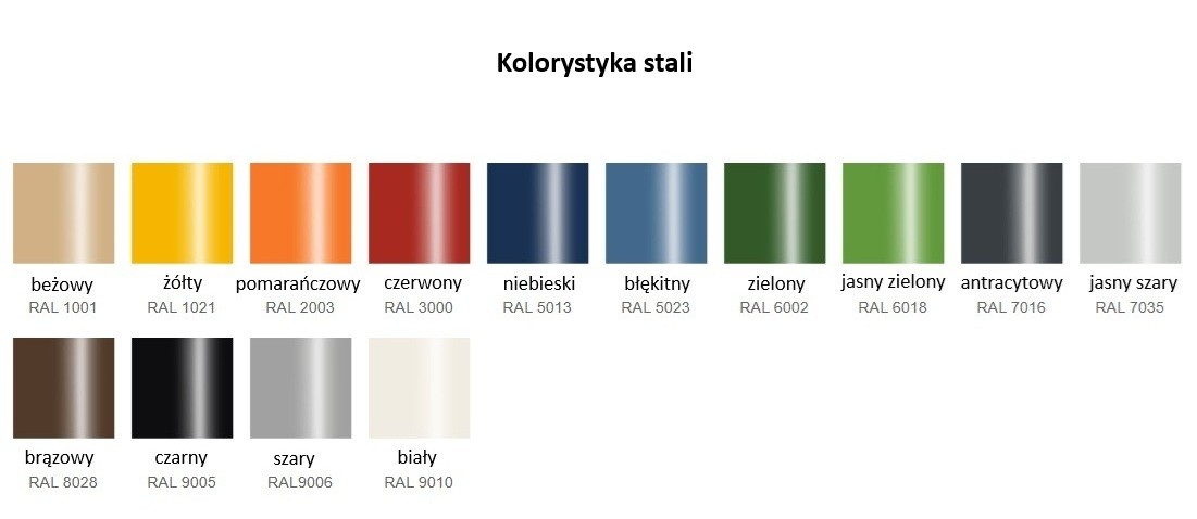 - Konstrukcja wykonana jest ze stalowych rur galwanizowanych, malowanych proszkowo;