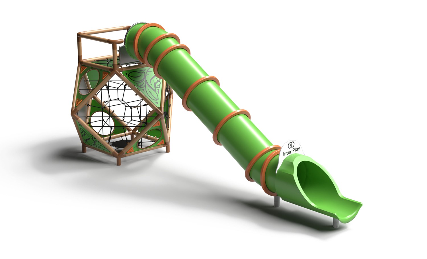 - Zjeżdżalnia w kolorze RAL 6018 (kolor dominujący) i RAL 2004.