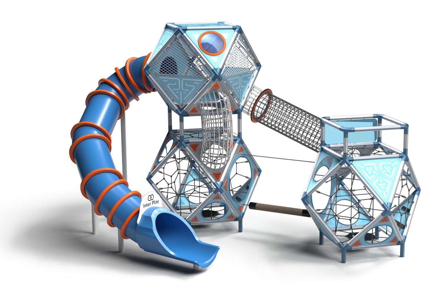 Zestaw Sfero Space 3-1 składa się z trzech połączonych ze sobą kul sferycznych oraz jednej długiej, tubowej zjeżdżalni. Każda kula jest bryłą Archimedesowską i dzięki swojej ośmiokątnej symetrii oraz promieniowo równobocznej konstrukcji stanowi niezwykle stabilną strukturę, która zapewnia najwyższy poziom bezpieczeństwa użytkowników. Pojedyncza kula sferyczna posiada 24 identyczne krawędzie, które tworzą rury konstrukcyjne wykonane ze stali konstrukcyjnej o średnicy 88,9 mm oraz grubości ścianki 2,6 mm ocynkowane ogniowo oraz pomalowane proszkowo. Elementy konstrukcyjne kul sferycznych połączone są ze sobą w innowacyjny sposób za pomocą wewnętrznych tulei łączących, które umożliwiają solidne połączenie elementów - dzięki temu konstrukcja zachowuje stabilność nawet przy intensywnej zabawie 39 dzieci.