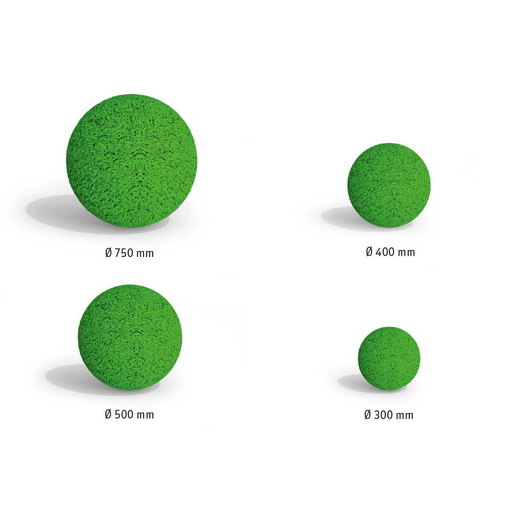Elementy są wodoprzepuszczalne, wykonane z mieszaniny granulatu gumowego SBR oraz kleju poliuretanowego. Opcjonalnie w dolnej części kuli może znajdować się element mocujący ułatwiający stabilne mocowanie. Montaż kuli ogranicza się do ułożenia na równym, stabilnym podłożu.