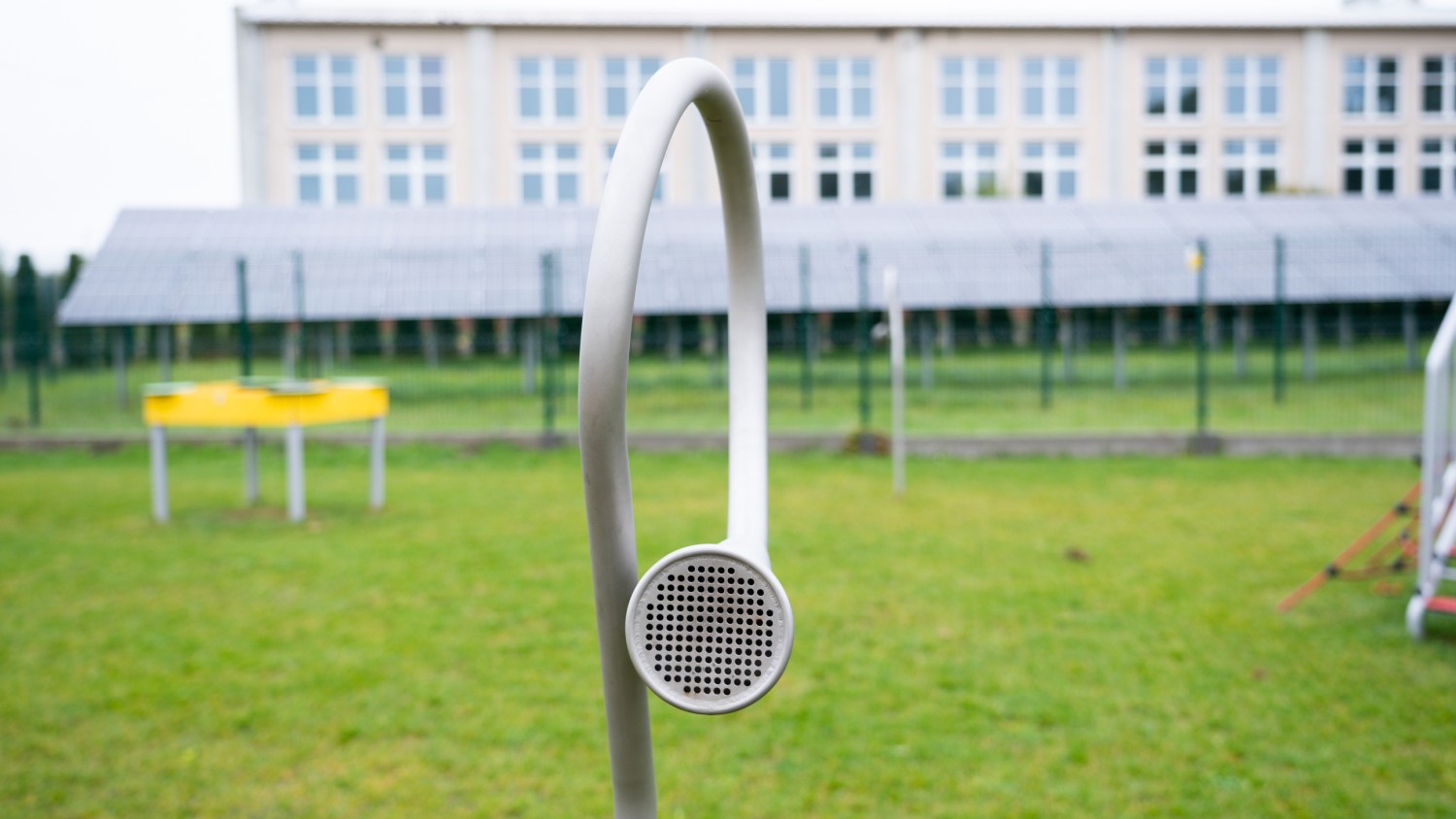 Urządzenie typu "głuchy telefon", które służy do rozmawiania. Dźwięk przesyłany jest za pomocą dwóch słuchawek w kształcie zakręconych trąbek, połączonych ze sobą podziemną rurką. Maksymalna odległość między słuchawkami wynosi 10 m. Konstrukcja wykonana jest ze stali nierdzewnej, odpornej na warunki atmosferyczne i intensywne użytkowanie. Urządzenie posiada certyfikat potwierdzający zgodność z normą PN-EN 1176-1+A1:2024-03 wydany przez jednostkę certyfikującą akredytowaną przez PCA lub równoważną jednostkę zagraniczną. Certyfikat musi być wydany w ramach akredytowanego programu certyfikacji, co potwierdza logotyp PCA lub równoważnej zagranicznej jednostki akredytującej, znajdujący się na certyfikacie. Certyfikat musi być ważny na dzień składania ofert. Do oferty powinien być załączony certyfikat oraz karta techniczna urządzenia. Przedstawiony rysunek produktu stanowi integralną część opisu – produkt musi być zgodny z przedstawionym wyglądem.