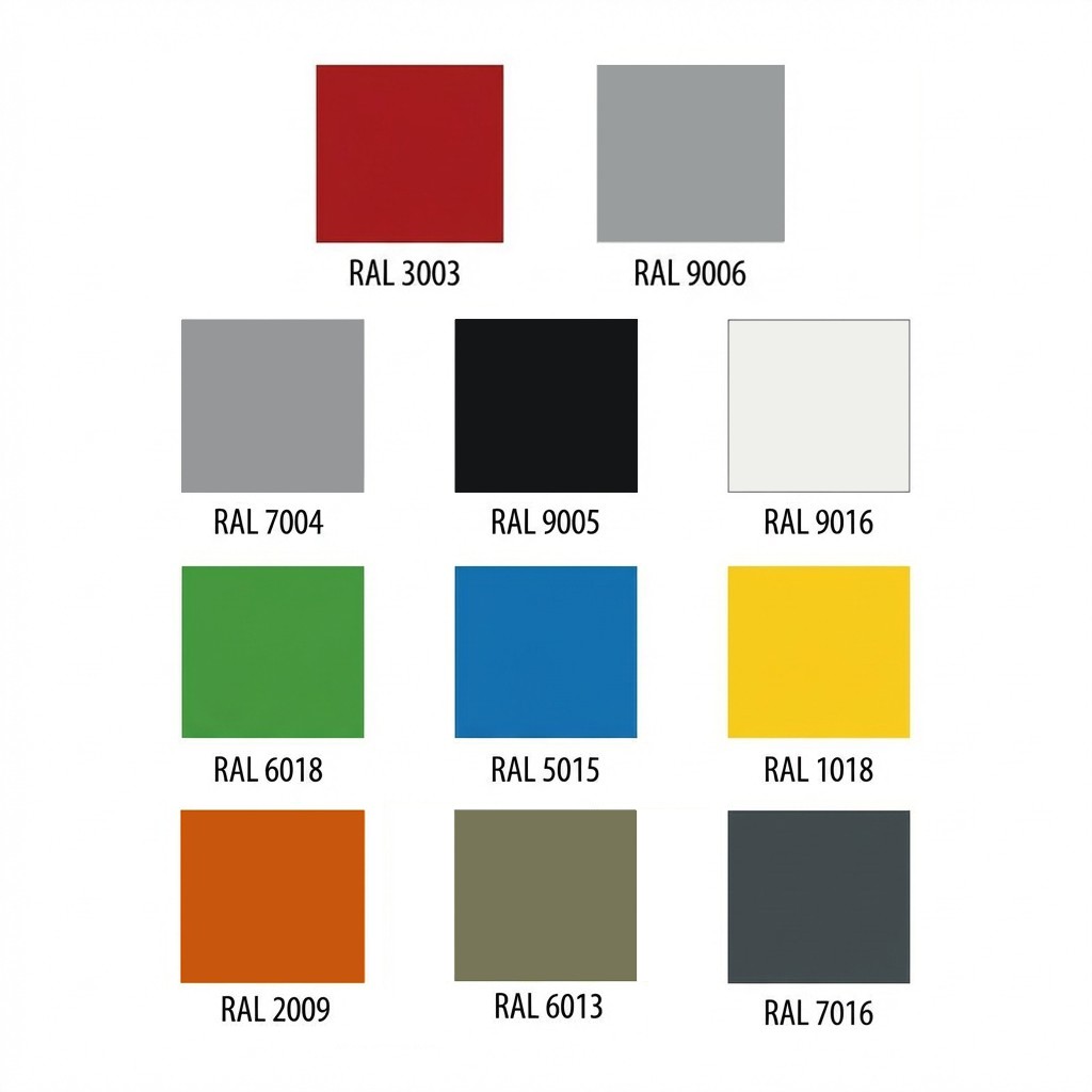 - Konstrukcja wykonana jest ze stali czarnej S235/S355 śrutowanej i malowanej proszkowo. Spawy zabezpieczone dodatkowym ocynkiem.
