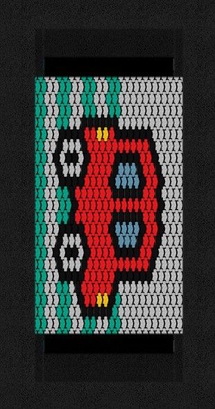 - Mata trampoliny przedstawia wizerunek auta. Mata jest wykonana z lamelek w kolorze żółtym, szarym, zielonym, czerwonym, czarnym oraz błękitnym,