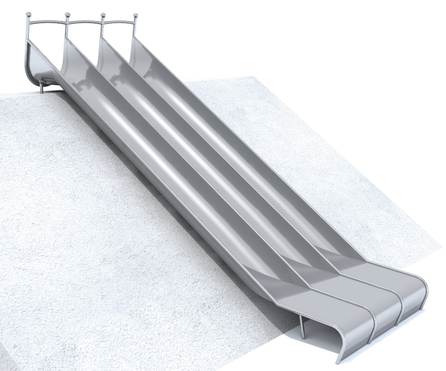 Zjeżdżalnia skarpowa GLITI RACE H2050 składa się z trzech prostych zjeżdżalni w kształcie rynny, pozwalających na równoległy i bezpieczny zjazd. Konstrukcję wspiera dziewięć nóg fundamentowych, wykonanych ze stali nierdzewnej, gwarantującej wysoką wytrzymałość i całkowitą odporność na korozję oraz zapewniających stabilność i trwałość całego urządzenia. Zjeżdżalnia wykonana w całości ze stali nierdzewnej AISI 304 (1.4301), o grubości blachy 2 mm oraz profilu 33,7 x 2 mm; powierzchnia jest szkiełkowana, odporna na warunki atmosferyczne i łatwa w utrzymaniu czystości.